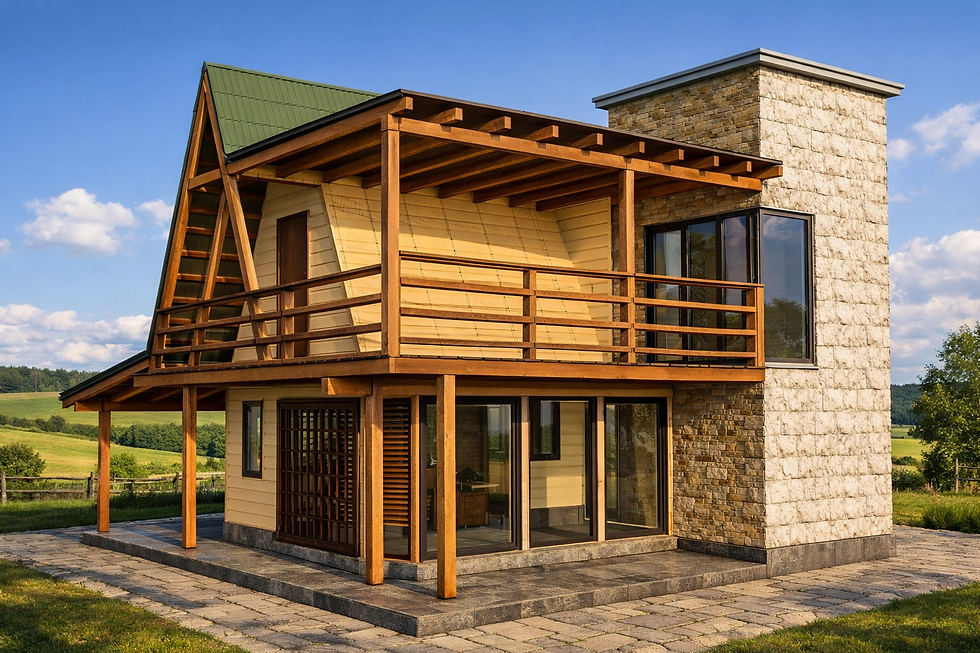 Nossas casas são mistas com madeira e alvenaria, sendo a maior parte em madeira (fornecemos esses materiais), e as áreas de alvenaria (banheiros, cozinha, fundação, serviço) ficam por conta do comprador adquiri-los.